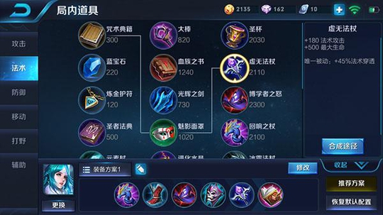 第一套出装:回响之杖、冷静之靴、博学者之怒、痛苦面具、虚无法杖、噬神之书
