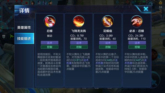 不知火舞是一位近战法师英雄拥有强大的突进能力,同时不知火舞是一个控制非常多的英雄,在小范围团战中非常占优势。