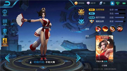 不知火舞是一位非常强的法师英雄,在前期可以利用超强的机动性来取得优势,后期可以利用技能的超远射程,来消耗敌人的血量。