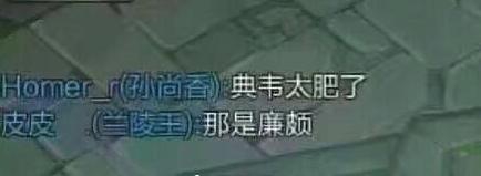 妹子孙尚香,说对面的典韦太肥了,兰陵王一脸嫌弃,告诉妹子那是廉颇。这妹子太可爱了~