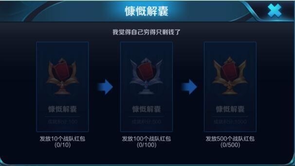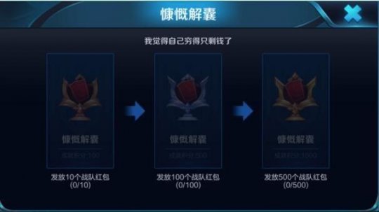 随着战队红包上线,游戏中还推出了四个与战队红包相关的成就: