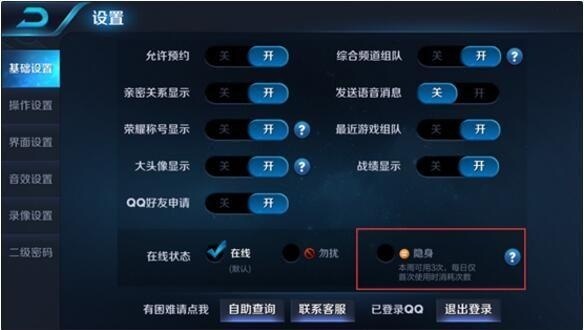 几个月前,王者荣耀隐身功能的相关信息就已曝光,而在今日的更新后这一功能也登陆部分正式服开启了测试。现在在游戏中可以利用设置>基础设置>在线状态来设置隐身状态。