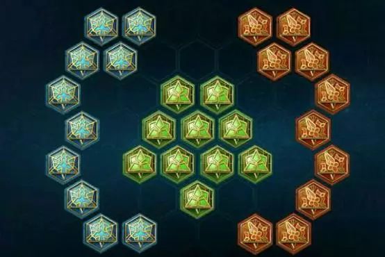 红色偏向进攻属性,蓝色:偏向防御和辅助进攻属性,绿色偏向功能属性。