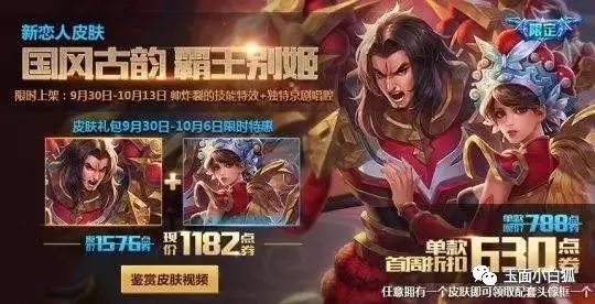 1、霸王别姬:单个皮肤售价788点券,史诗品质。