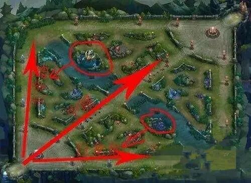 这种分路更加冒险,会放弃野区资源(BUFF怪分别由上下路的英雄开局吃)