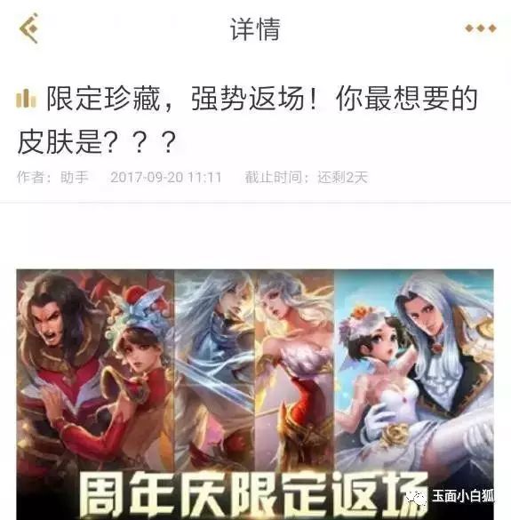 原贴是这样的:限定珍藏,强势返场!你最想要的皮肤是???