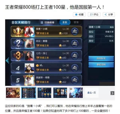 小六找了一张其他的上了王者百星的玩家