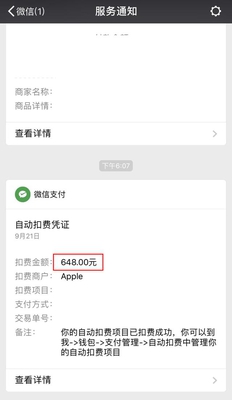 上面显示自动扣费(指纹?)