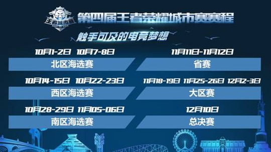 你的电竞梦想触手可及!10月1日,第四届王者城市争霸赛即将开战。王者城市赛一直致力于将比赛机会送到每个玩家门口,发掘更多新生力量,为KPL输送优秀的选手。现在,距离第四届王者城市赛开战已经不到一个月的时间,怀揣电竞之梦的你是否已经充分了解了赛事详情,准备好加入战斗了呢?