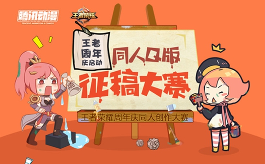 热闹非凡的《王者荣耀》周年庆怎么少得了Q萌的王者英雄与故事呢?《王者荣耀》携手腾讯动漫联合举办“同人Q版征稿大赛”,超强的评委阵容——小新、DAZUI、二娃联袂而来,为你呈现一场“绘声绘色”的王者盛宴! 活动期间,围绕《王者荣耀》相关的英雄、怪物、故事进行创作,以Q版化作为形式表达并投稿,即有机会赢取现金大奖及丰富的游戏道具奖励!爱拼才会赢,等你来挑战!