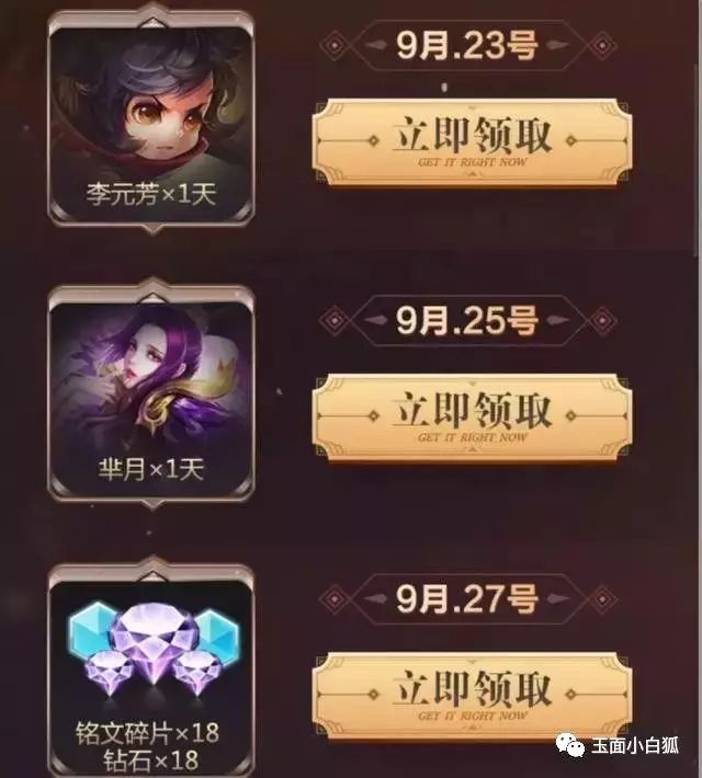 签到活动:赠送李元芳x1天,芈月x1天,铭文碎片与钻石