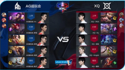XQ的娜可露露开局在中路配合队友直接拿下三杀,XQ前期占据主导优势顺势拿下第一个暴君,不过经济双方基本持平。到了中期AG超玩会利用阵容的优势,在经济没有被拉下来的情况下反超XQ,在中路击杀XQ两人之后直接拿下主宰。AG超玩会利用兵线优势拿下黑暗暴君并在上路击杀XQ三人之后直接强推拿下比赛。