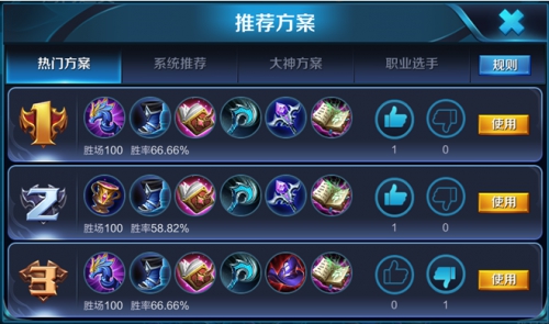 为了让玩家能够方便地为自己使用的英雄挑选一套合适的装备方案,我们提供了“系统推荐”“大神方案”和“职业选手方案“供选择。但是,本着实践是检验真理唯一标准的理念,我们仍然需要一套科学合理的算法,来挑选出普适性最强,最适合大多数玩家的装备方案。