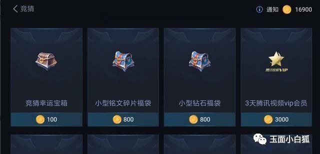竞猜币目前可以兑换实体战队周边、钻石、铭文碎片、腾讯视频会员。战队周边可以不要,钻石咱们也可以不要,但是铭文碎片可是好东西,5W竞猜币可以兑换500铭文碎片,貌似有点亏,咱们也可以不要。