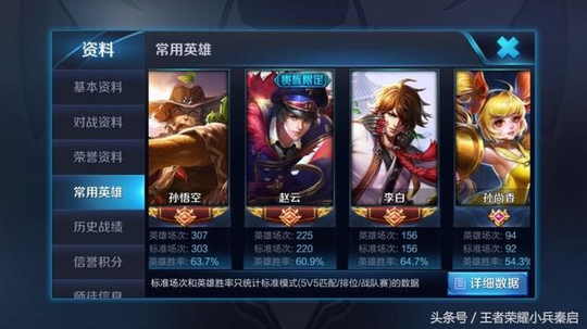 从图二中也能看出该玩家的水平,除了射手之外,猴子、赵云和李白的胜率都在60以上,已经是中上游的水平了。而据玩家说,这只是他四个账号的其中一个。