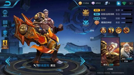 黄忠作为非常热门的射手英雄,表现也是非常亮眼。黄忠最强势的地方在于强大的输出能力,可以在团战中做出巨大的贡献。