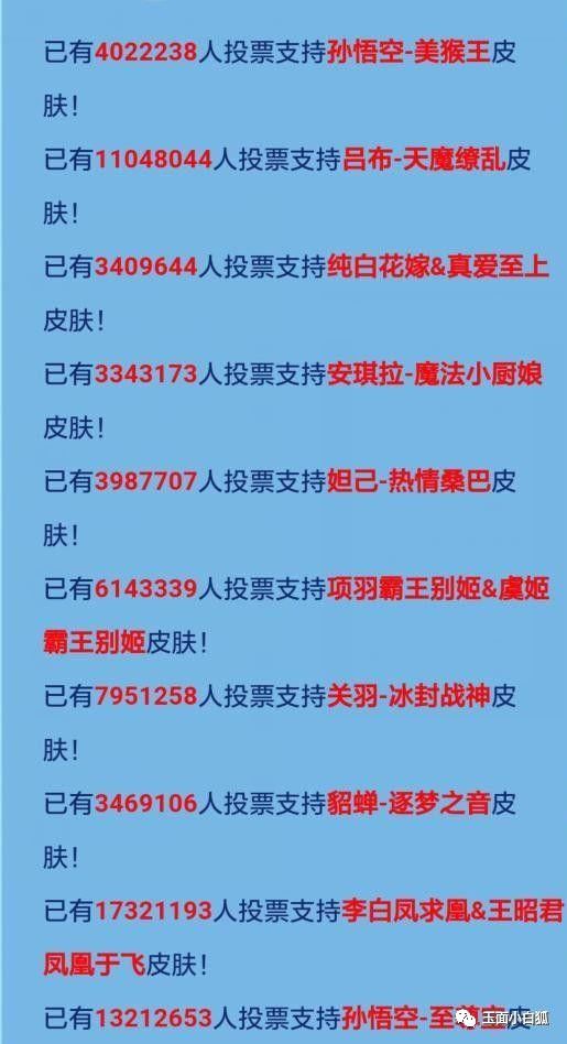 今日的最新数据跟昨日相比,第一名凤求凰的票数和第二名至尊宝的票数涨幅几乎一致,但是第二名至尊宝的票数和第三名天魔缭乱的票数差距越来越大,从之前的相差150W票,进一步扩大至210W票。几乎可以肯定,天魔缭乱后力不足,返场基本无望,那么本次返场的限定皮肤就是至尊宝、凤求凰、凤凰于飞三款皮肤。