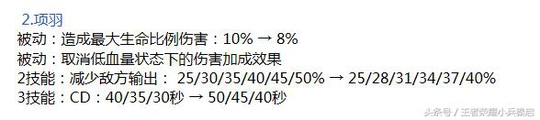 上面小编和大家说了增强的冷门英雄,下面再说说上次调整之后数据太突出的英雄做了调整。