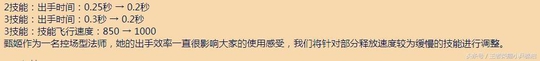 本次甄姬的二三技能释放的速度加快,大招的飞行速度也进行了增加,别小看这么一点点速度,对于对手来说,冰冻更加难躲了。