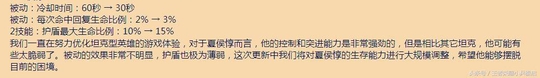 被动冷却的时间直接缩减到正式服的一半,生命值回复从2%升到3%,二技能的护盾增加5%,全方位提升夏侯惇的防御能力,这一波过后,相信夏侯惇会重返玩家视线。