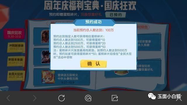 目前预约总人数才刚达到100W,这不符合王者玩家的风格,这一次活动究竟可以获得什么奖励呢?官方只是提及:兑换惊喜大礼,天美在本次周年庆中的也算下血本了,限定皮肤和永久英雄都免费送,所以此份大礼肯定不简单。而且蛋糕碎片赠送的比较多,预约总人数达到5000W,即可领取50碎片,肯定有一个终极大礼需要很多碎片才能兑换。