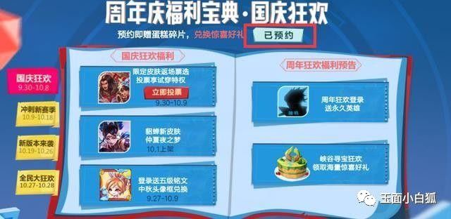 王者荣耀周年庆即将举行,在此之前有一个预约活动,大家都不怎么参与,或很多玩家并不知情。在此要号召大家动动自己的小手,参与即可领取蛋糕碎片,在周年庆期间可以兑换神秘惊喜大礼,这个活动类似于铠的宝藏,是一个全服活动,所以需要大家一起努力预约啦。