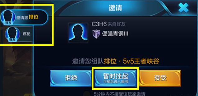 组队邀请界面增加暂时挂起功能,可避免调整装备或铭文时被强制中断的情况发生!另外多个好友同时邀请比赛时,可以在同一个窗口中进行快速选择!