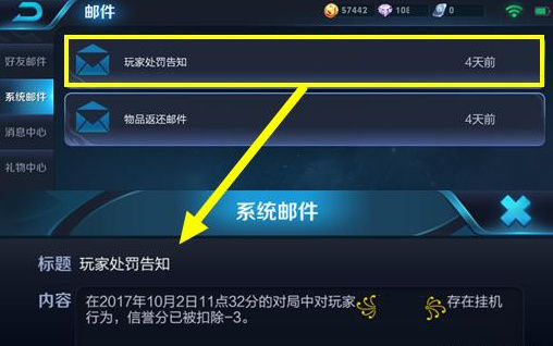 审判系统升级,对玩家违规行为进行自动处罚,处理结果会在比赛结束后告知当局玩家,如下图所示: