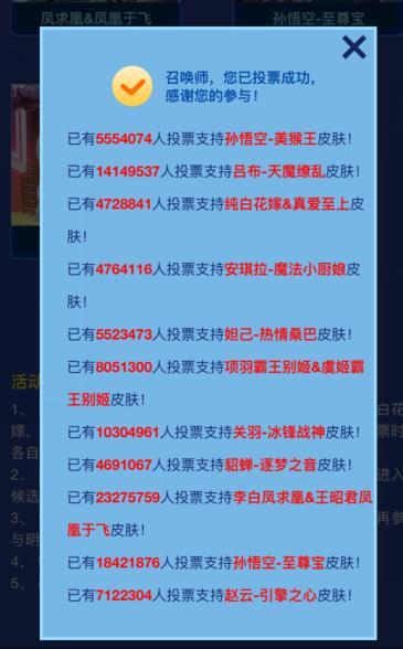 现在知道凤求凰和凤凰于飞绑定投票的威力了,两大人气英雄完全碾压其他英雄皮肤!