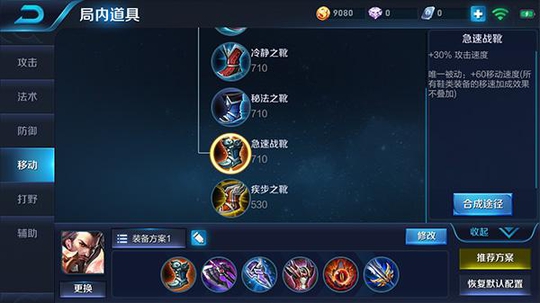 六神装:急速战靴、暗影战斧、冰痕之握、反伤刺甲、不死鸟之眼、破军