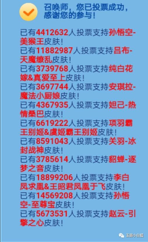 王者荣耀限定皮肤返场投票已经好几天了,票数趋近稳定,这也是小白狐实时数据的最后一期。本次投票还是有很多惊奇的地方,比如:没有欢呼声的至尊宝,票数居然飙升。