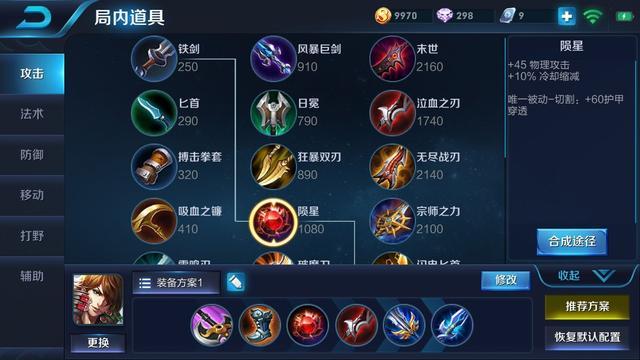 推荐出装:巨人之握、攻速鞋、暗影战斧、泣血、破军、名刀(复活甲)