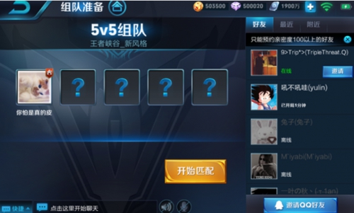 3、选将界面,玩家自己的名字和玩家自己邀请的组队队友名字会正常显示,其他玩家的名字均不会显示。