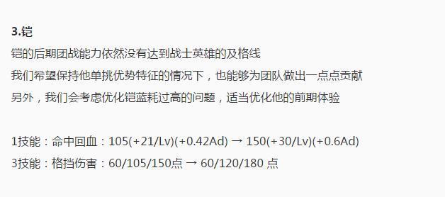 铠这是第二次加强了,主要是针对回血不明显和格挡伤害。铠目前在正式服高端局比较常见,作为一个二手控制还是非常稳的。