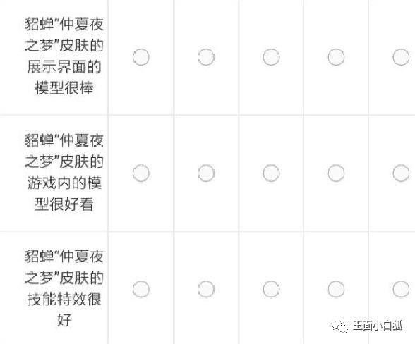 另外貂蝉仲夏夜之梦目前已经开启了调查问卷,部分小伙伴肯定已经收到了推送,这问卷并非是针对全体玩家,可能就是购买仲夏夜之梦的那一部分玩家会收到问卷,此次问卷涉及到仲夏夜之梦的各个方位,包括模型、特效、动作、语音,等等。