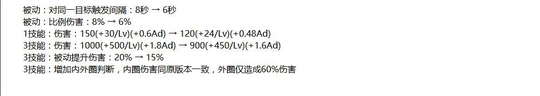 最后就是各个英雄的改动了。