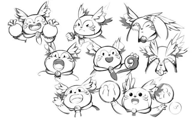 在设计梦奇的时候,构思就是一个天真可爱的小动物,但是天真可爱的小动物种类非常多,在经过很多的方案尝试之后最终选择了这样的一个形象,因为梦奇有吞噬噩梦改变体型和增强能力的设定,所以在小形态和大形态之间肯定会有一定的反差。小的时候要突出可爱,大的时候要突出憨厚慵懒的感受,同时也要具备强大的战斗力。
