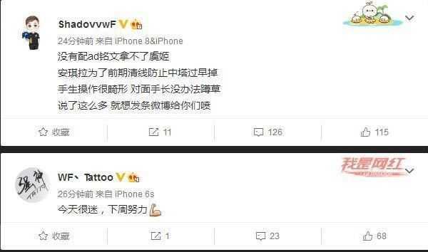 我们可以看到WF的阵容中是没有射手的,其实很多会玩的老铁也提出这局WF应该拿中单虞姬来对阵不知火舞。安琪拉实在是拿的蠢!