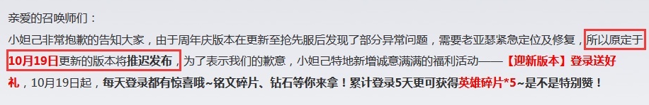 此外,新英雄梦奇的上线时间也将推迟,将与新版本同时上线。