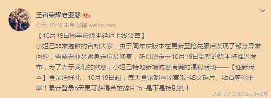 王者荣耀:紧急通知,19日不更新赛季,延迟一礼拜,补偿方案出炉