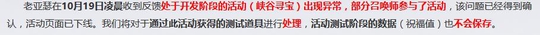 不过天美很快就做出了反应,关闭活动入口,下线活动页面,发出公告通知这些道具和数据均为测试,都不会被保存。