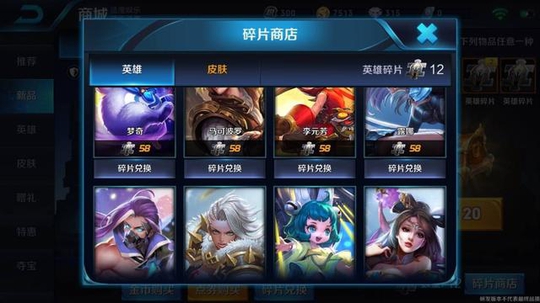 今天一位玩家登陆游戏后意外的发现碎片商城更新了,58碎片可以兑换梦奇、马可波罗、李元芳、露娜,蔡文姬、貂蝉等英雄,这可都是当前版本最强势的英雄。
