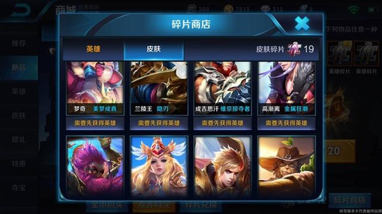 碎片商城会不定期更新,当前可兑换的有苏烈、黄忠、铠、曹操、周瑜、高渐离、干将莫邪、牛魔、太乙真人、鬼谷子、孙尚香、老夫子、刘邦、妲己、安琪拉。相信大多数小伙伴都已经兑换到自己心仪的英雄,另外碎片还可以兑换皮肤,商城总共有26款供大家选择。