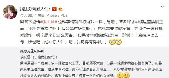 张大仙回复网友如何追暗恋的女神 有这情商想不火都难