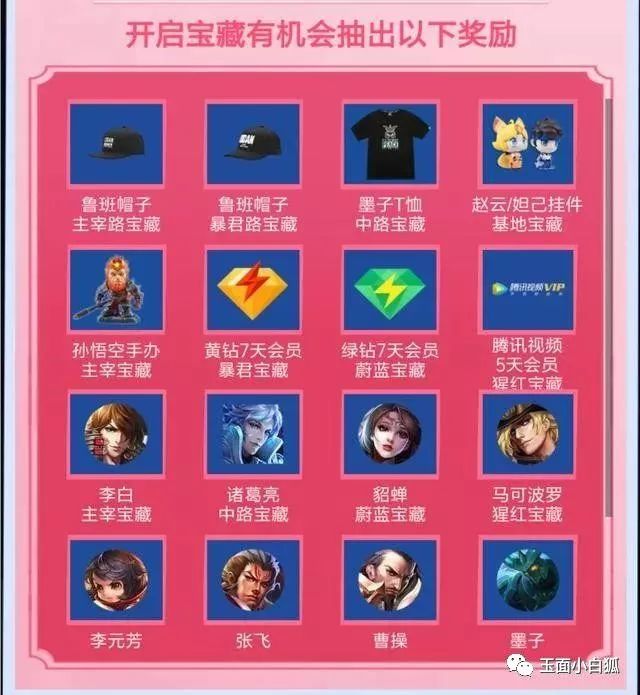墨子、马可波罗、貂蝉、诸葛亮、张飞、李元芳、曹操、李白8个永久英雄+手办+会员+周边,此等奖励十分丰富,绝对是良心活动,不过概率真不敢恭维。