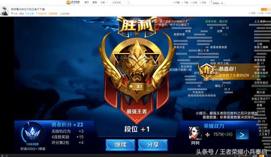 同样是昨日就开始疯狂上分,同样是打了一天一夜,直到今天早上九点才打上最强王者。
