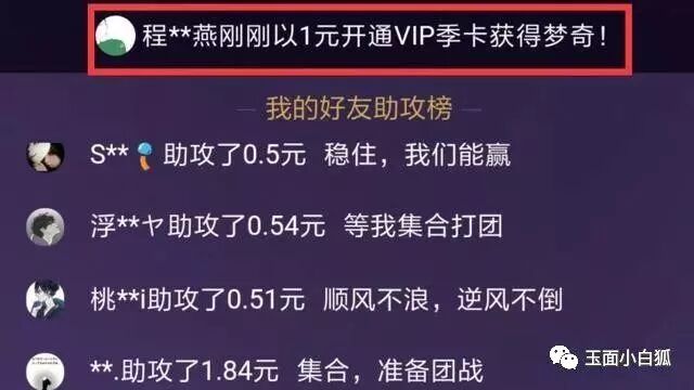 坑点二:刷出的奖励必须开通季卡才能领取,比如:8英雄碎片,那必须开通45元季卡才能领取。好友助攻最多助攻20下,如果想要获得梦奇,那么每次需要助攻2.45元,纵观自己的助攻金额和数个好友的助攻金额,没有一个助攻是超过了2元,2元会不会是阈值呢?赶紧看看自己的助攻金额,是不是没有超过2元的?或者说助攻金额没有达到过2.45元的?20个2.45元助攻?那是天方夜谭吧!