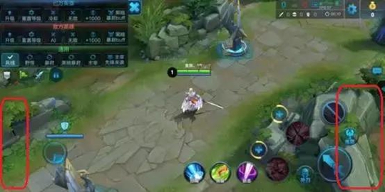 左侧控制英雄移动的按钮还看不出什么,而右侧控制英雄攻击和施放技能的明显就较之前远离了屏幕边缘!