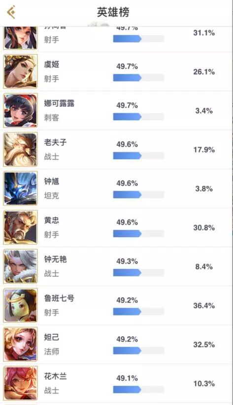 在上个赛季的时候,长城小队除了花木兰外,其他所有人的胜率都不能看。