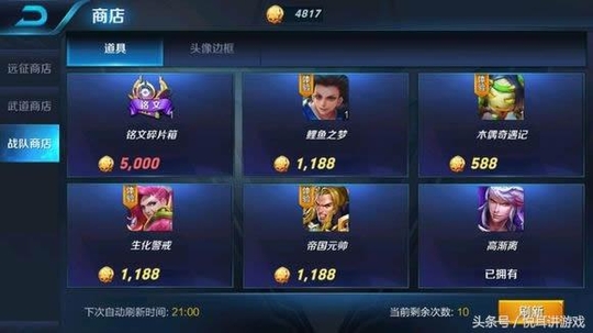 一个星期能打四次战队赛,如果四连胜的话可以获得一万左右的战队币,战队商店有个符文宝箱,5000一换,一个500碎片,一个星期光是战队赛就能拿到1000碎片,很是划算。